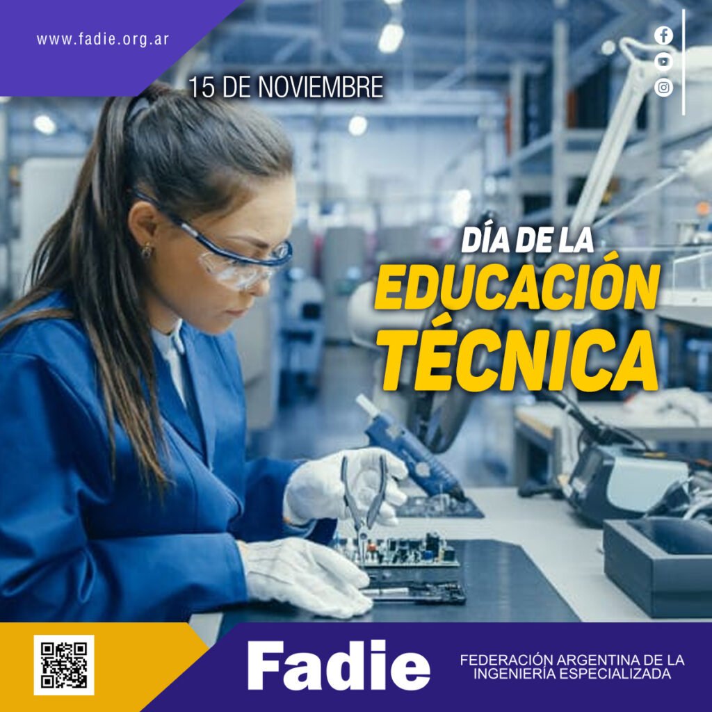 La Federación Argentina de la Ingeniería Especializada (FADIE) saluda en su día a las instituciones educativas, cuerpos docentes, estudiantes y egresados de la modalidad técnica.